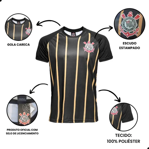 Frete grátis com entrega no mesmo dia ✓ Compre online com segurança com Compra Garantida © Camisa Corinthians Masculina Timao Preta Gold N 10 Nota Fisc ❤